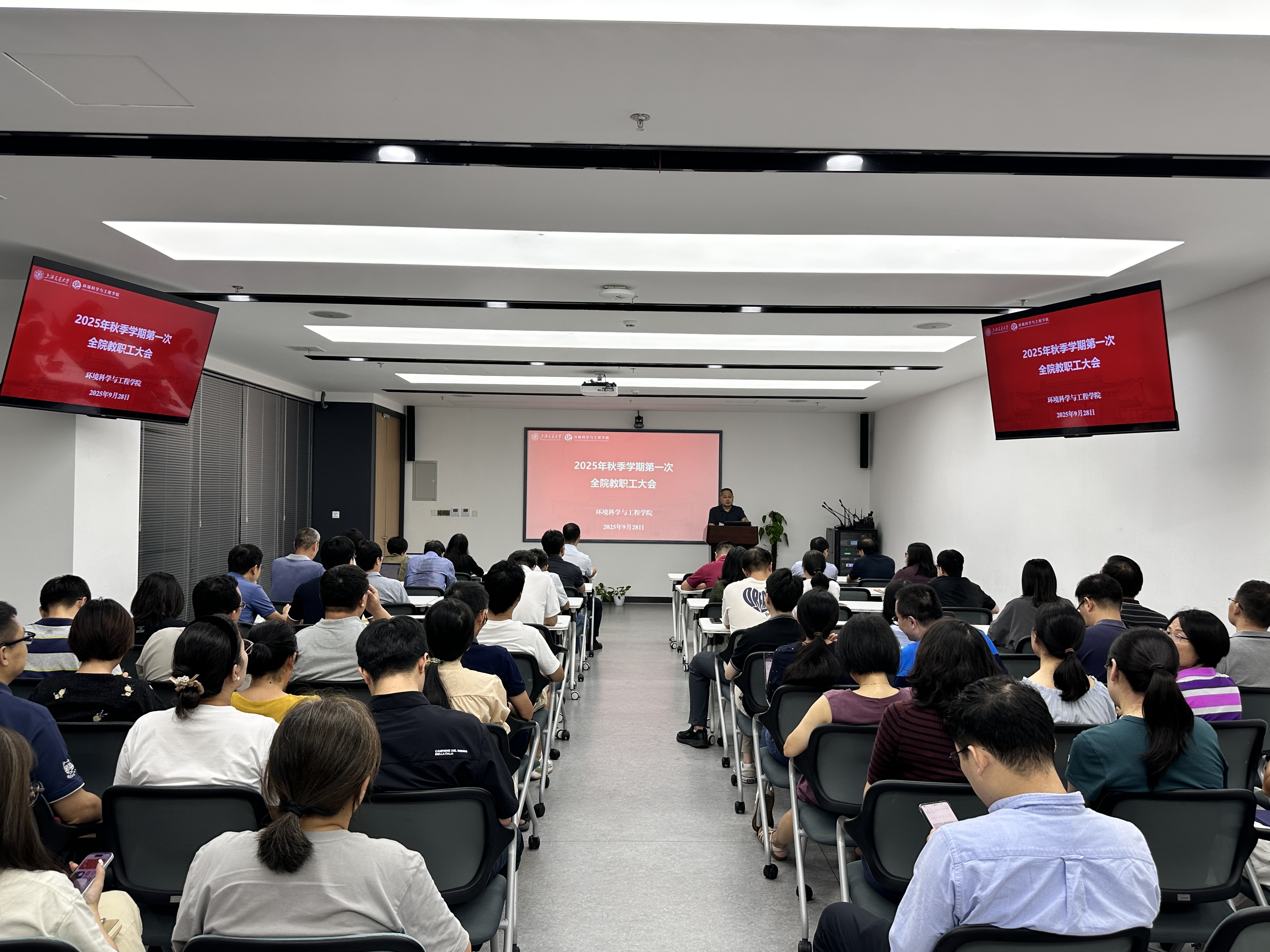 9月28日下午,环境学院2025年秋季学期第一次全体教职工大会在绿色环境楼231会议室举行。学院党政领导班子、全体教职工参会,会议由院长耿涌主持。