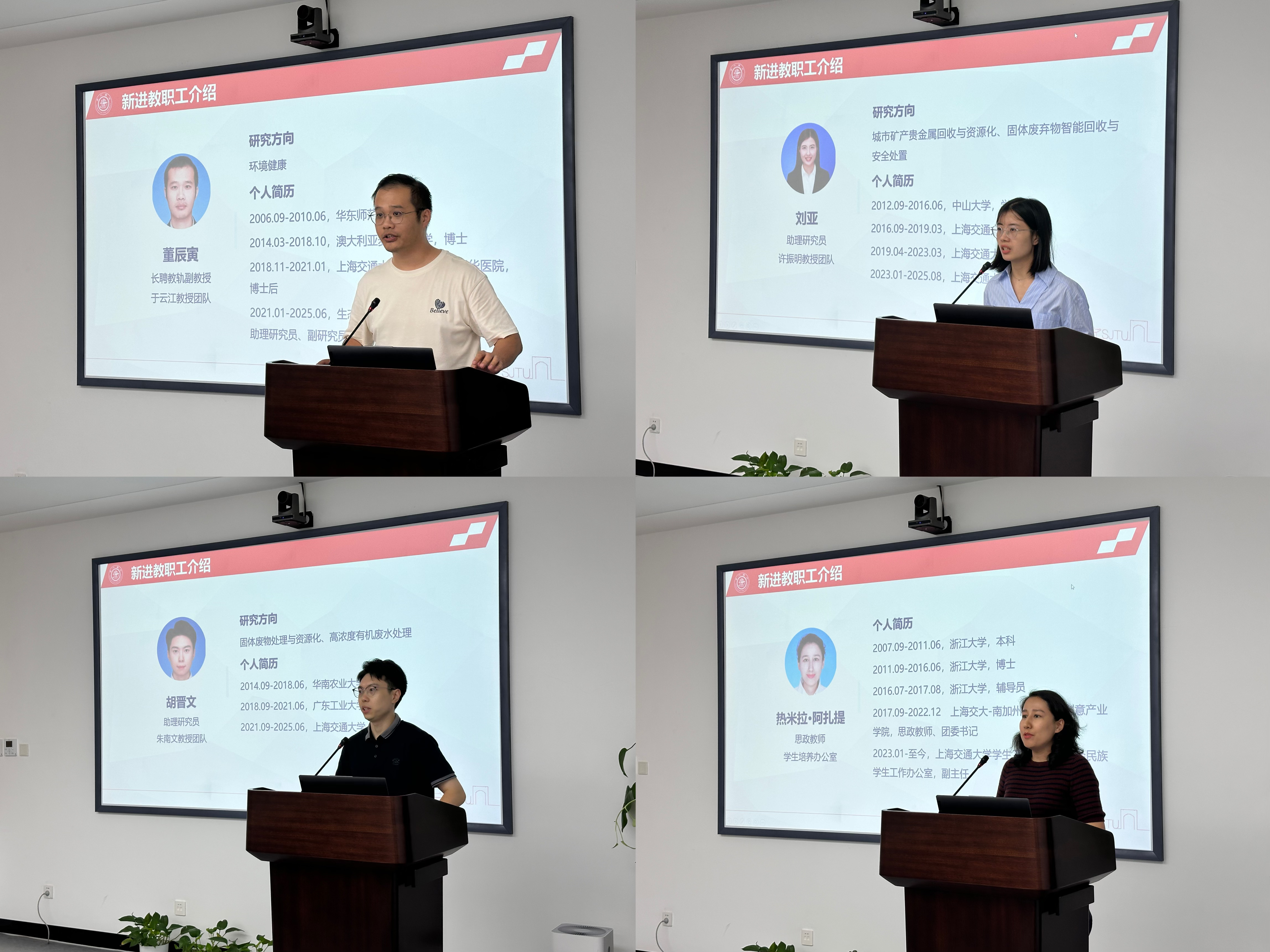 会上,2025年学院4位新入职教师分别做个人介绍。新进长聘教轨副教授董辰寅加入于云江教授团队,新进助理研究员刘亚加入许振明教授团队,新进助理研究员胡晋文加入朱南文教授团队,新进思政教师热米拉·阿扎提加入学生培养办公室。未来,期待四位新教师能快速融入团队与集体,在教学科研与育人岗位上深耕实干,以扎实的专业素养践行立德树人使命,与学院共赴新征程。